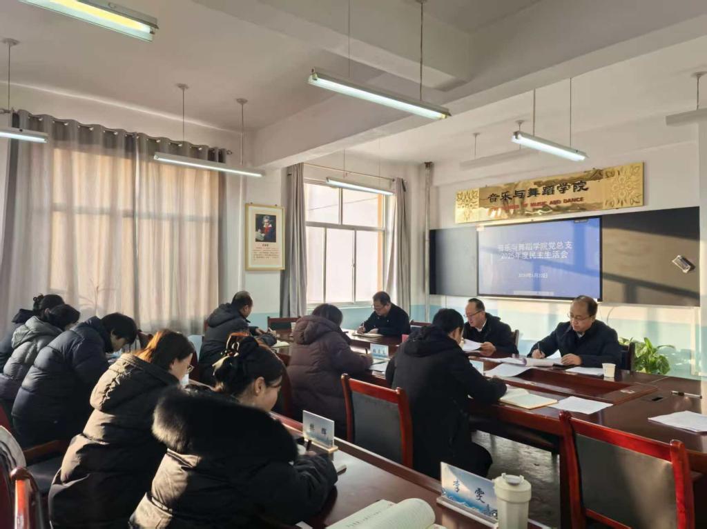 1月22日上午,音乐舞蹈学院召开2025年度民主生活会,深入落实全面从严治党要求,强化班子建设与作风提升。学校党委委员、副校长何新征到会指导,学院领导班子成员、党员干部参会。