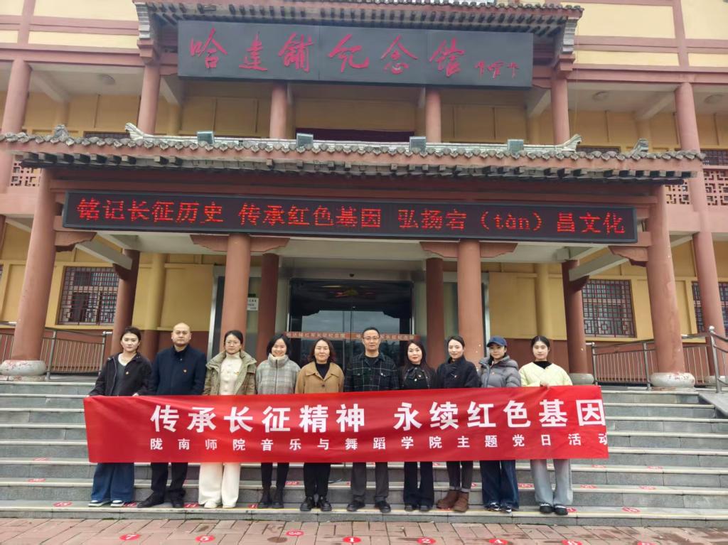 为深化党员党性教育,续红色血脉,11月8日,音乐与舞蹈学院党总支以“传承长征精神 永续红色基因”为主题,组织教师党支部、学生党支部全体党员赴哈达铺红军长征纪念馆开展主题党日活动,在红色圣地沉浸式感悟革命历史、锤炼党性修养。
